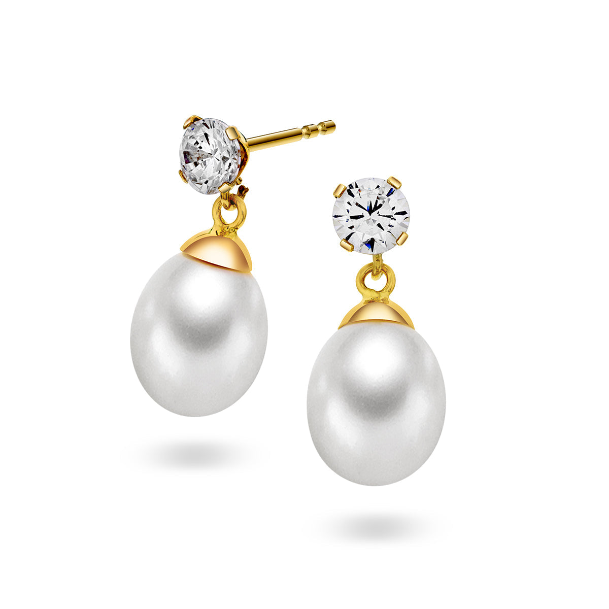 Hengende Gullørepynt i 14kt Gult Gull (585), med Perle og Zirkonia