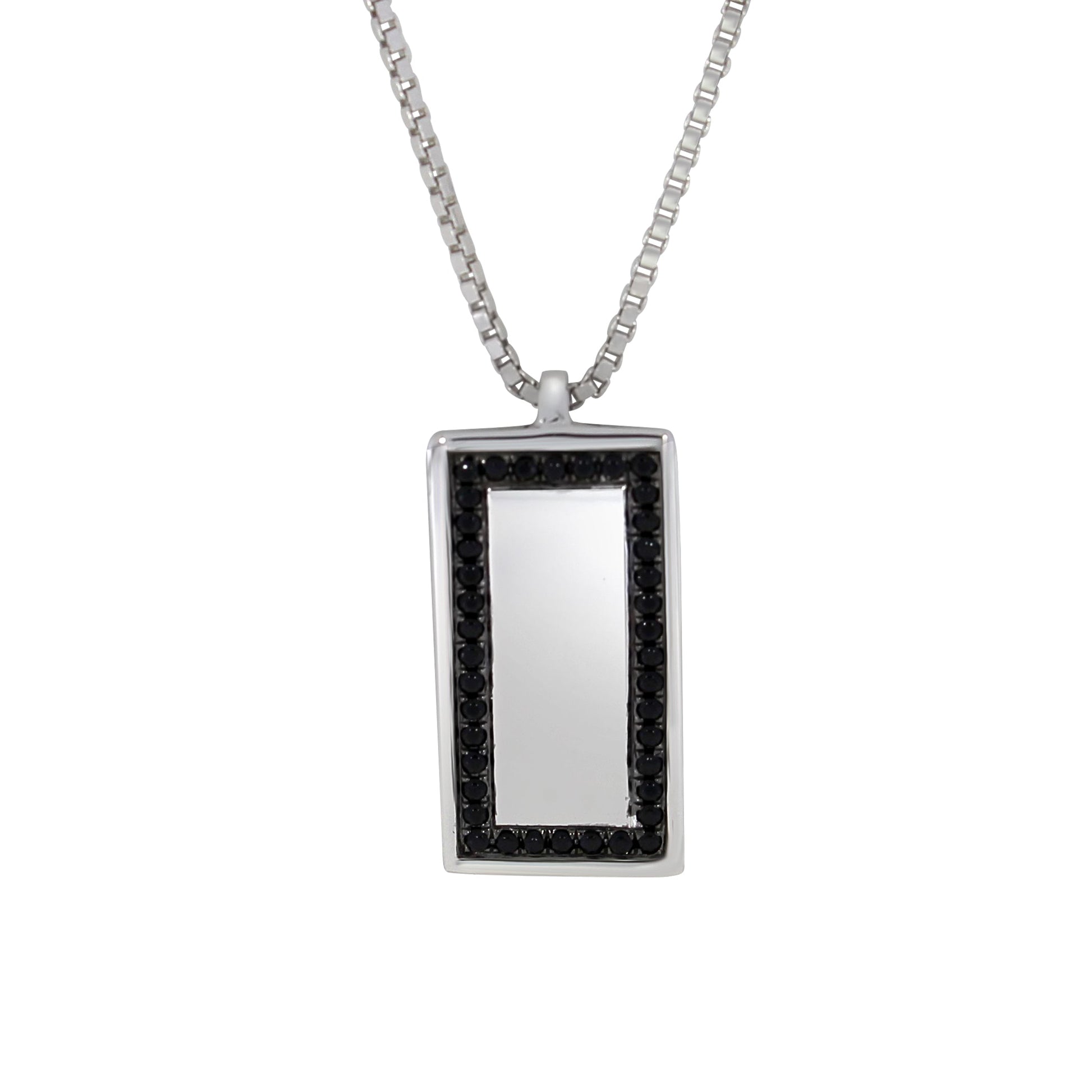 Herreanheng i 14 karat hvitt gull med en markant innramming av svarte spineller på totalt 0.30 ct. Den rektangulære formen og speilblank overflate gir smykket en kraftfull og stilren karakter, perfekt for deg som ønsker en detalj med distinkt og moderne uttrykk.