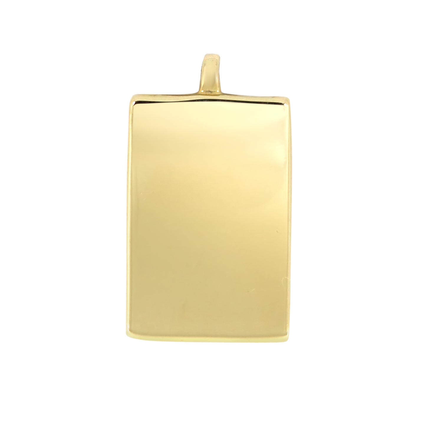 Klassisk herreanheng i 14 karat gull med en blankpolert overflate og rene linjer som gir et tidløst og elegant uttrykk. Den rektangulære flaten er perfekt for personlig gravering – enten du ønsker initialer, dato eller et symbol med spesiell betydning. Et solid og stilrent smykke som fungerer like godt alene som med andre kjeder.