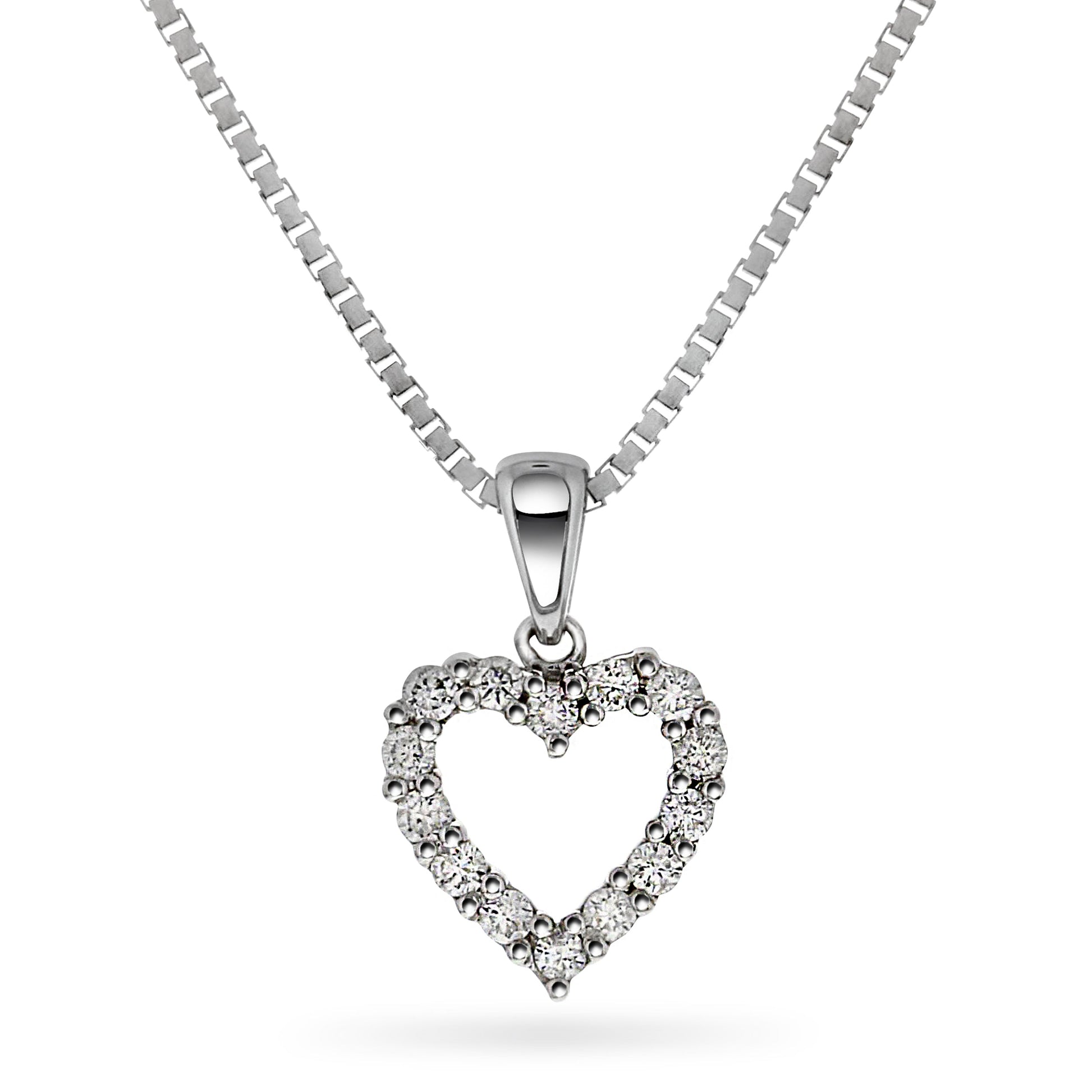 Elegant hjerteanheng i 14 karat hvitt gull med glitrende diamanter på totalt 0.30 ct. Den åpne designen gir et lett og tidløst uttrykk, mens de briljantslipte diamantene fanger lyset og skaper en vakker glans mot huden.