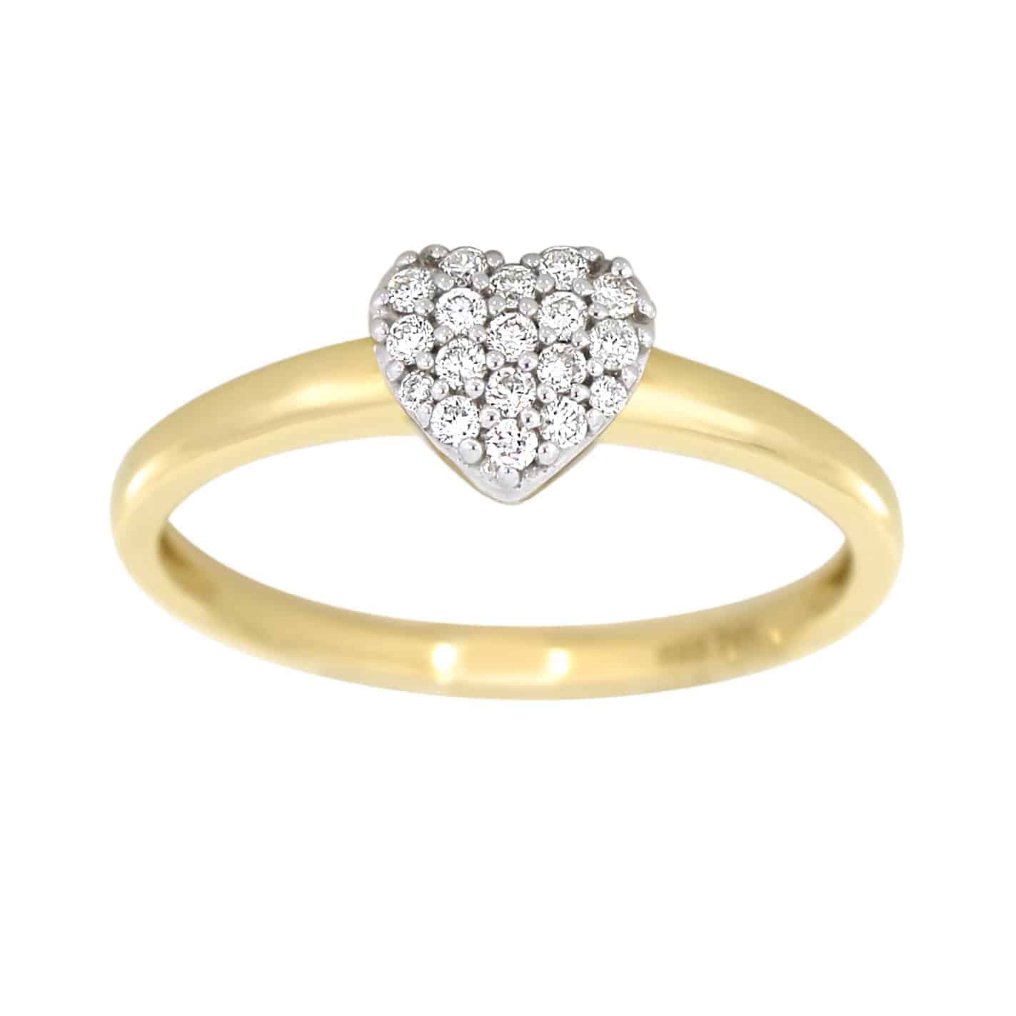 Hjerteformet diamantring i gult gull, 0.15CT TWSI