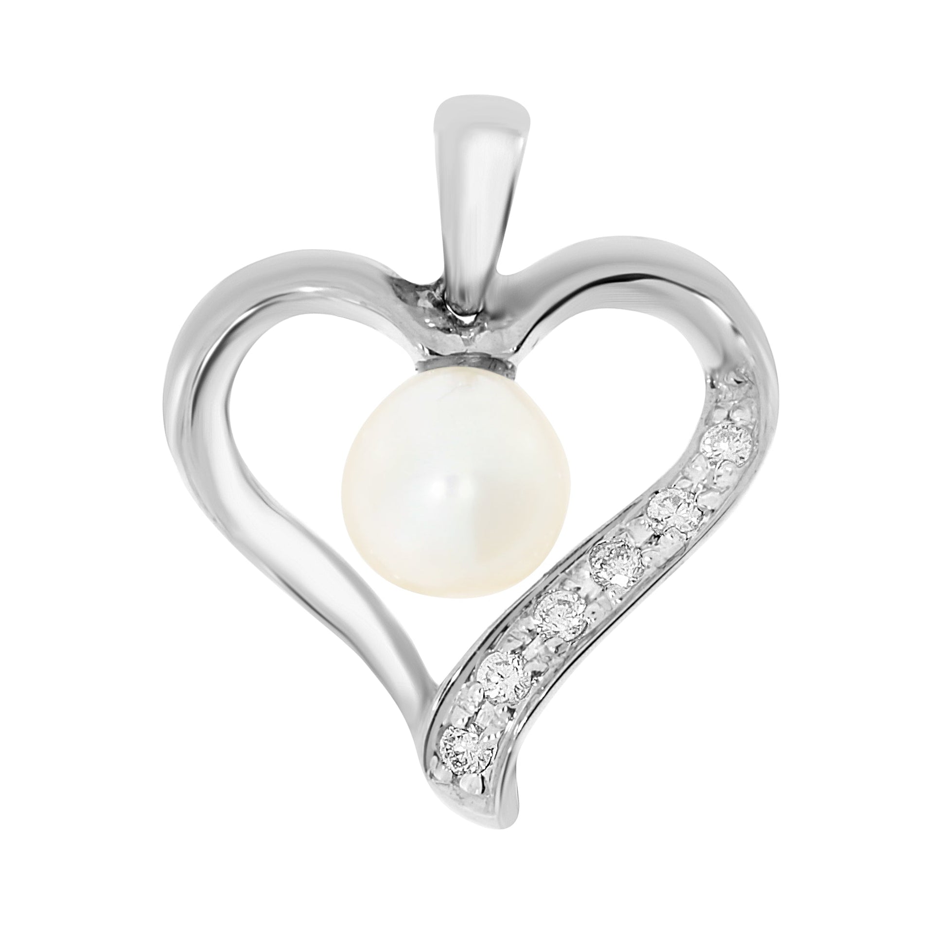 Hjertesmykke i 14kt Hvitt Gull (585), 0.07ct TW/SI Diamant og 6mm Perle