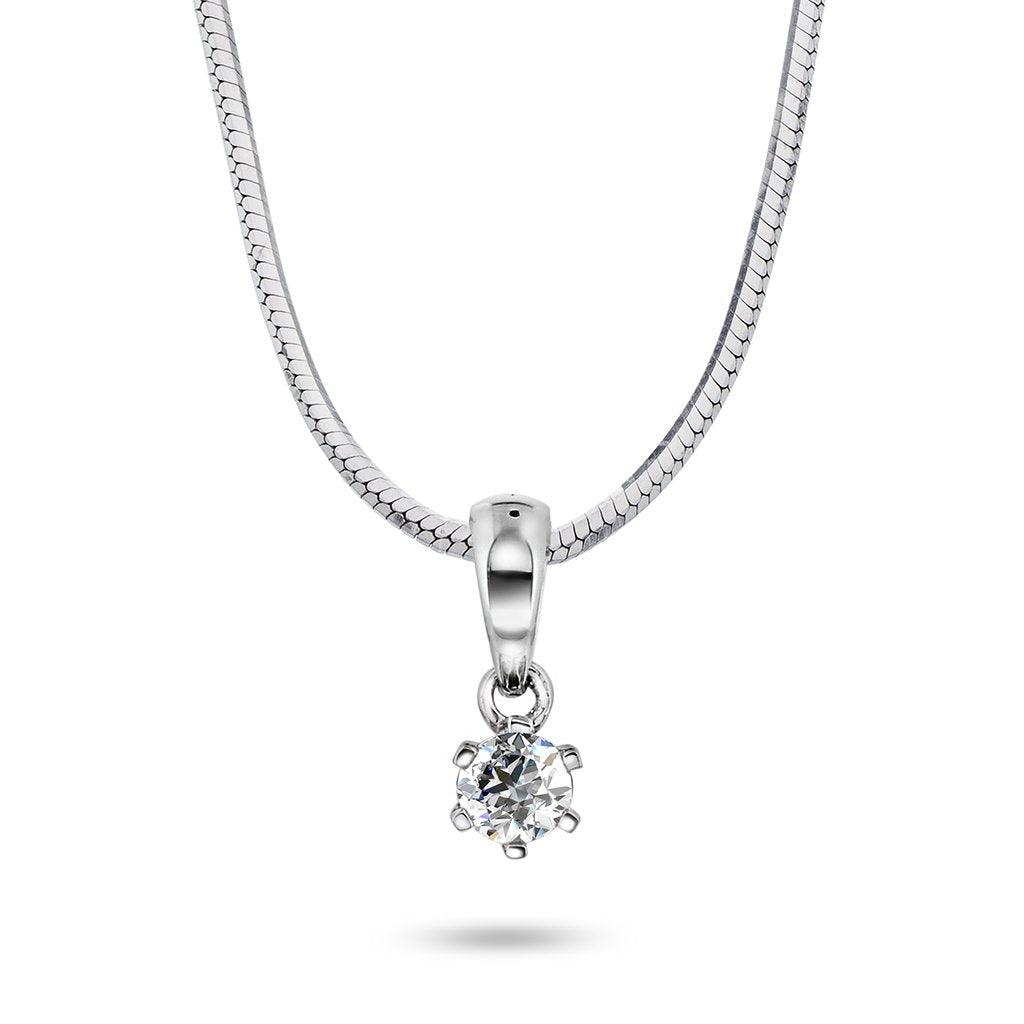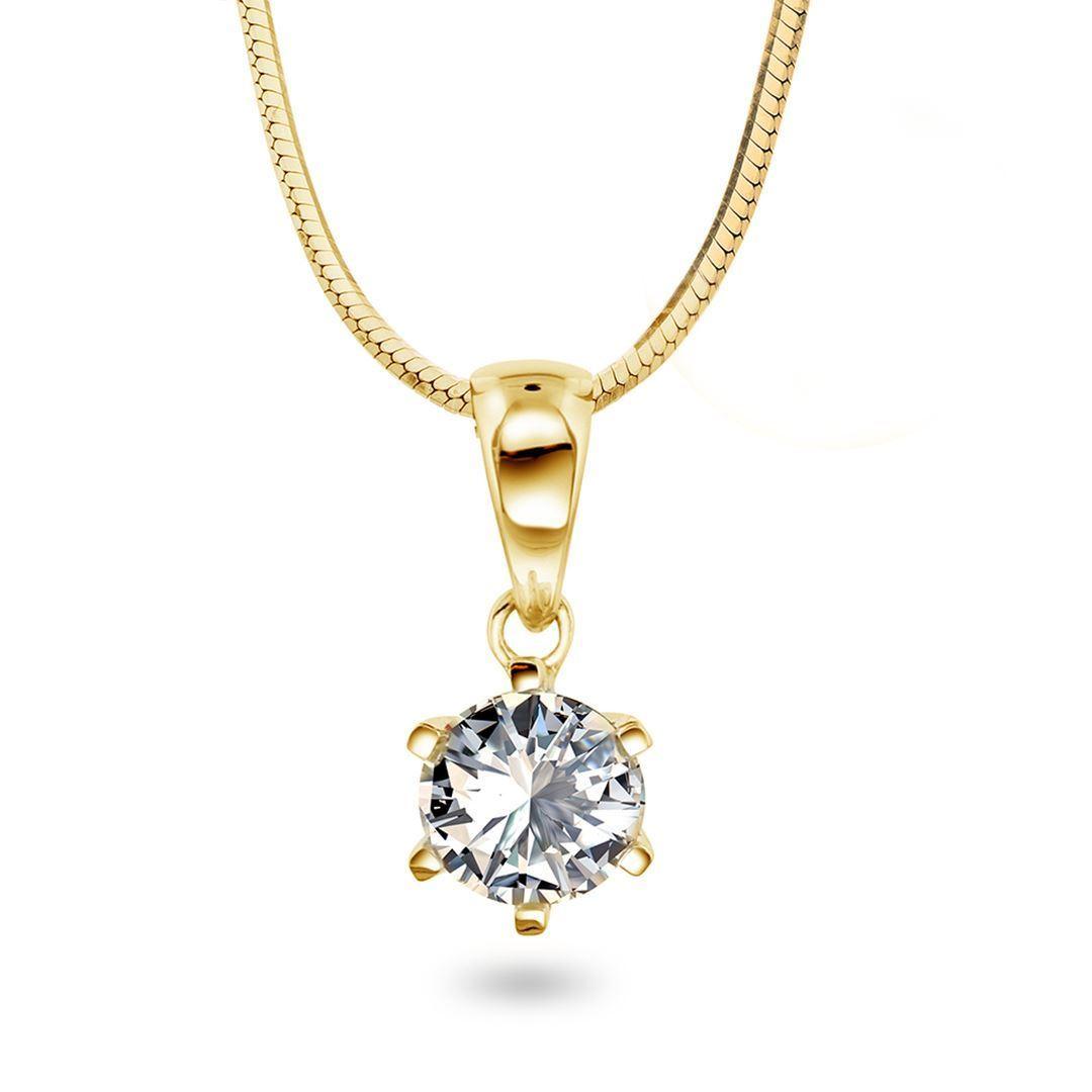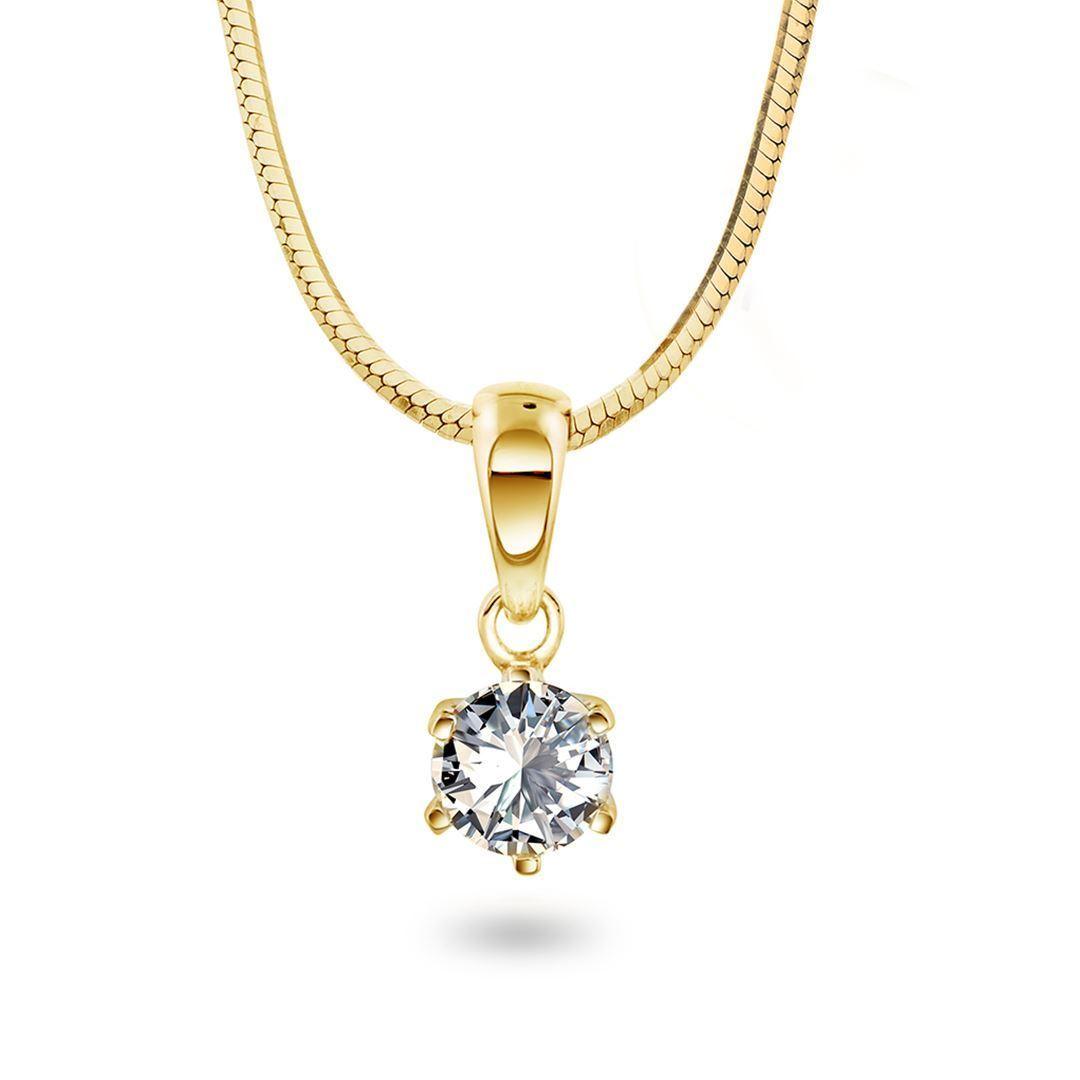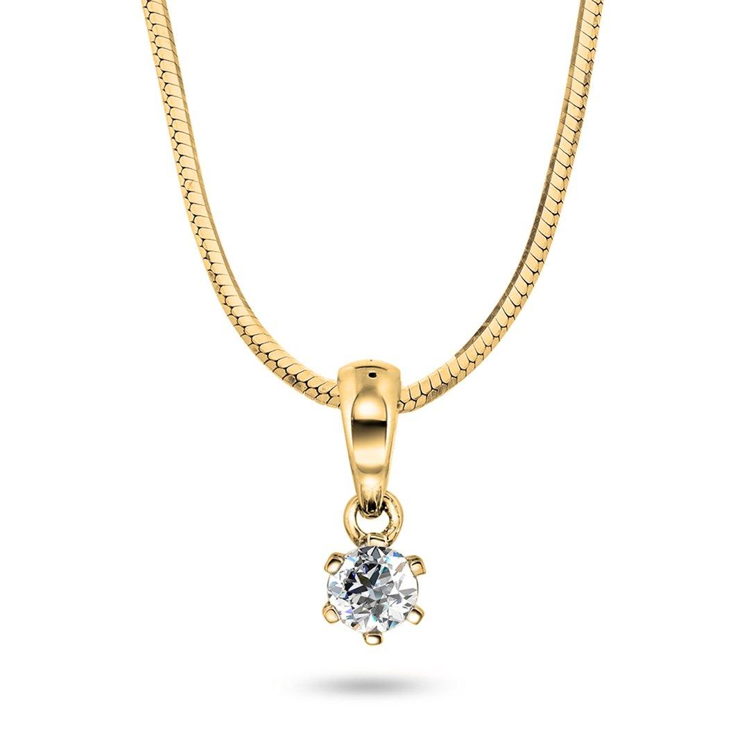 Tidløst anheng i 14 karat gult gull med en strålende diamant innfattet i klassisk seks griffinnfatning. Diamanten kan velges fra 0.07 ct til hele 1.00 ct, slik at du finner den perfekte størrelsen for enhver anledning. Anhenget er en del av enstens diamantsamlingen til "HeleneV", vårt eget merke og kombinerer sofistikert design med utsøkt kvalitet. Et smykke som gir et eksklusivt uttrykk og passer like godt til hverdags som til fest.