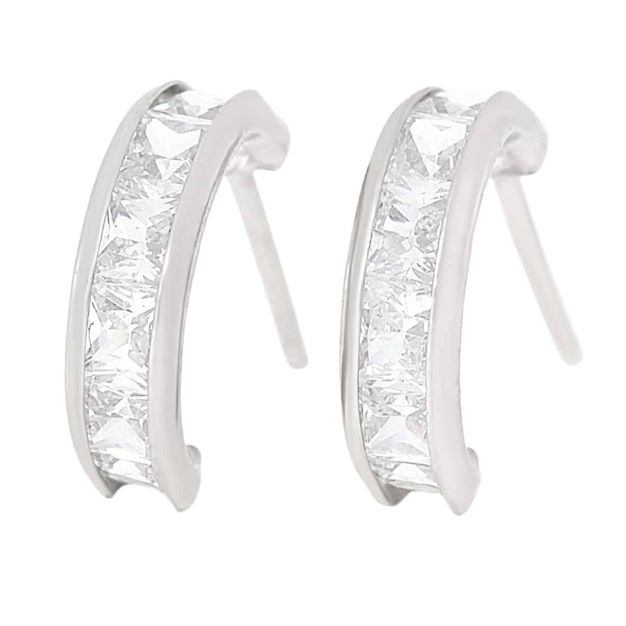 Ørepynt i 14KT (585) hvitt gull med zirkoner som er festet i en litt bøyd rekke. Festes med stift og propp. Enkel og stilig ørepynt i hvitt gull.