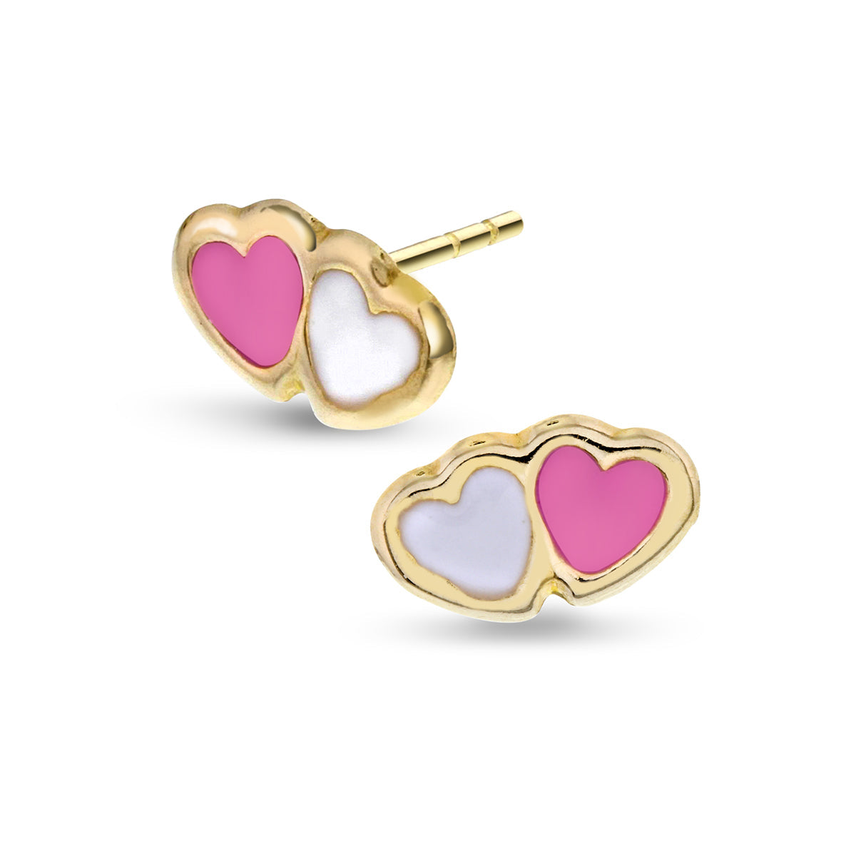 Flott 14k (585) ørepynt i gult gull og emalje, med hjertemotiv. Dette passer perfekt til barn, og som gave til dåp eller navnedag.