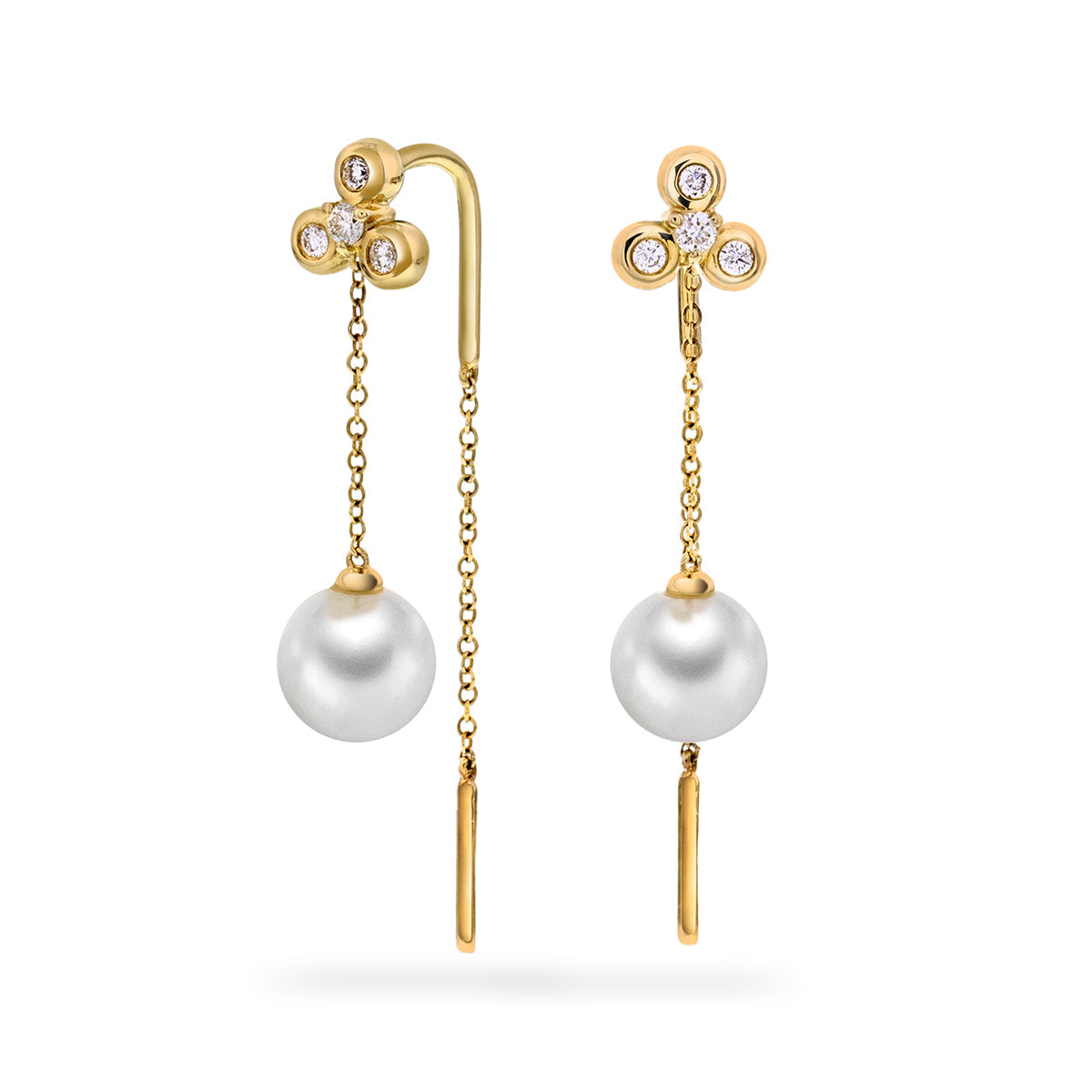 Ørepynt i Gult Gull Med 0.13ct TW/SI Diamanter og Perler