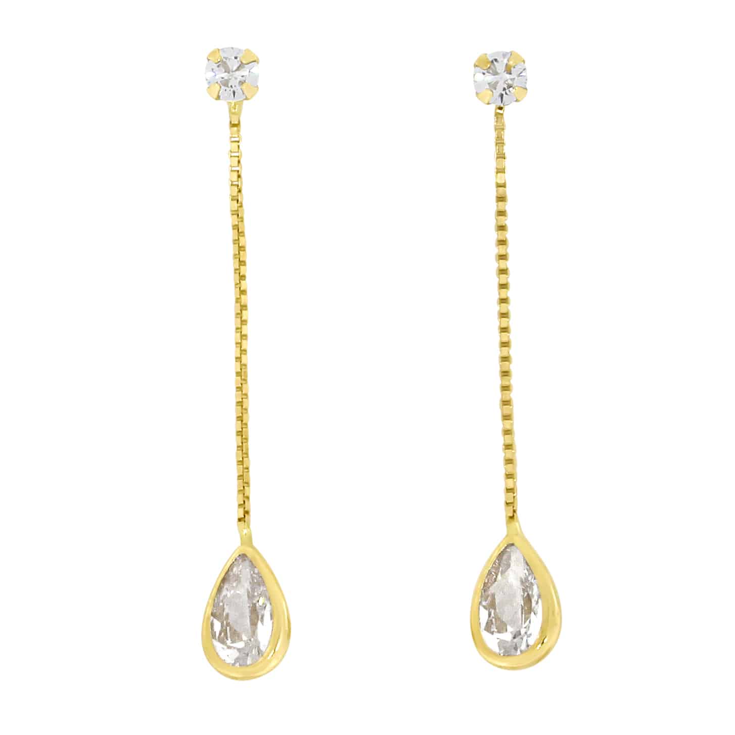 Disse flotte øredobbene er satt sammen av (585) 14k gult gull og zirkoner. De er nette men tydelige og vil pynte opp et antrekk til en hver anledning.