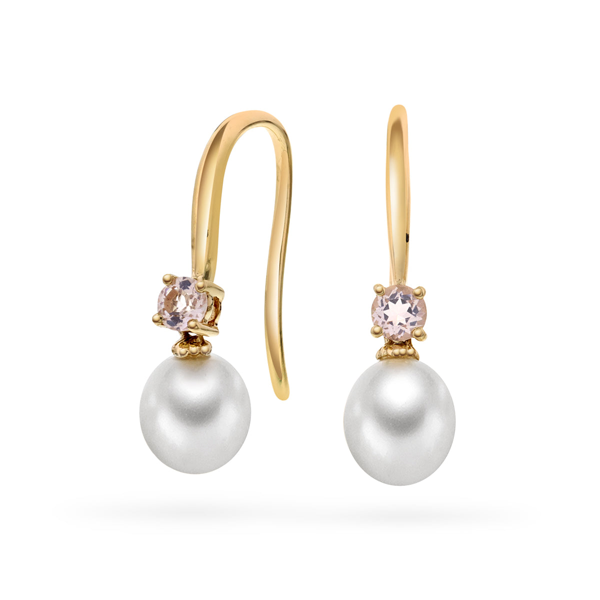 Ørepynt i Gult Gull(585), 0.20ct Rosekvarts og Ferskvannsperle