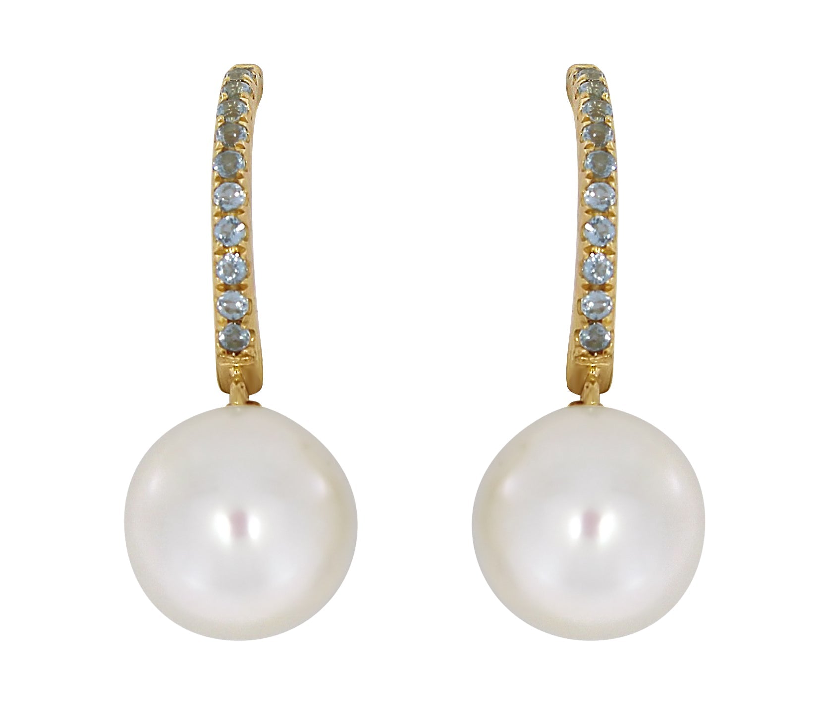 Ørepynt i Gult Gull(585), 0.24ct Topas og 9.5mm Perle