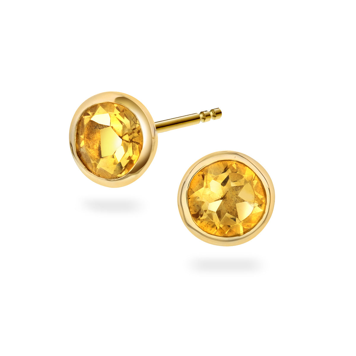 Strålende ørepynt i 14 karat gult gull med rundslipt citrin på totalt 1.10 ct. Edelstenen er bezel-innfattet og fremheves av gullets varme glød, som forsterker den livlige gulfargen. Det rene designet gir smykket et moderne uttrykk med tydelig dybde og glans. Hver detalj er utformet med fokus på presisjon og symmetri.