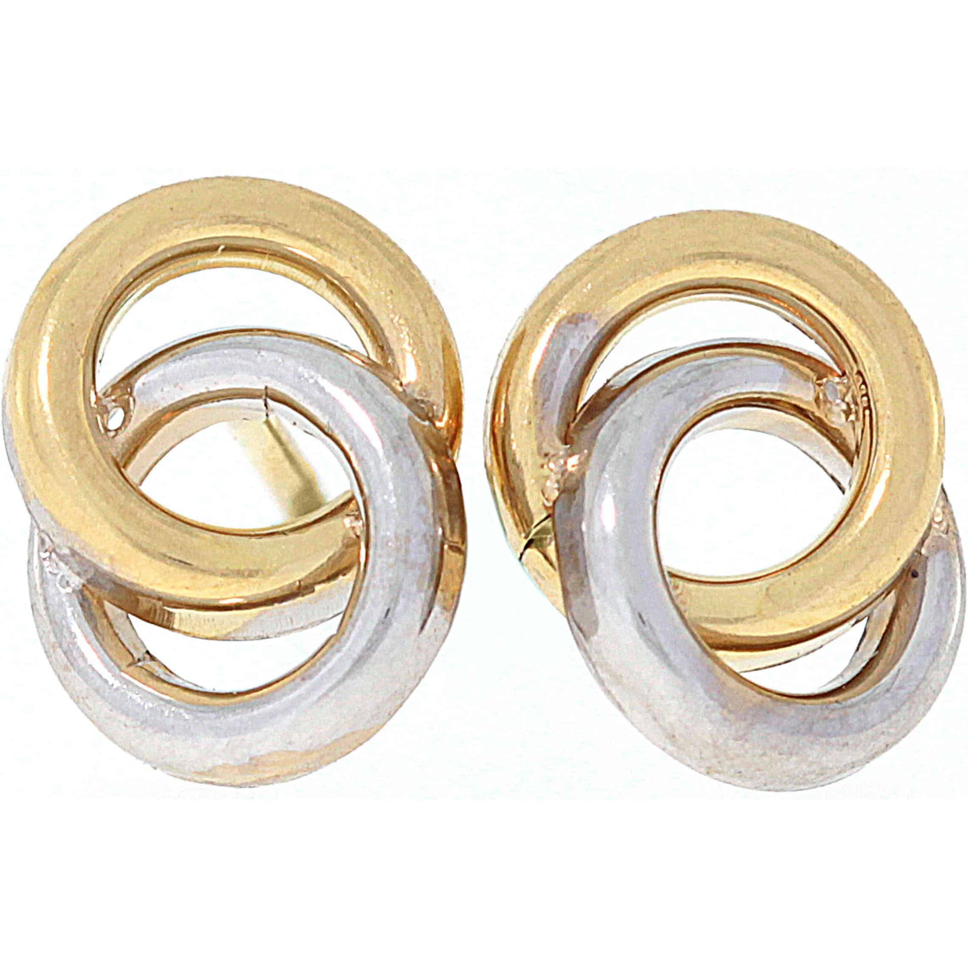 Lekker ørepynt i 14KT (585) gult og hvitt gull. Øredobbene har to ringer som går i hverandre – den ene i gult, den andre i hvitt gull.