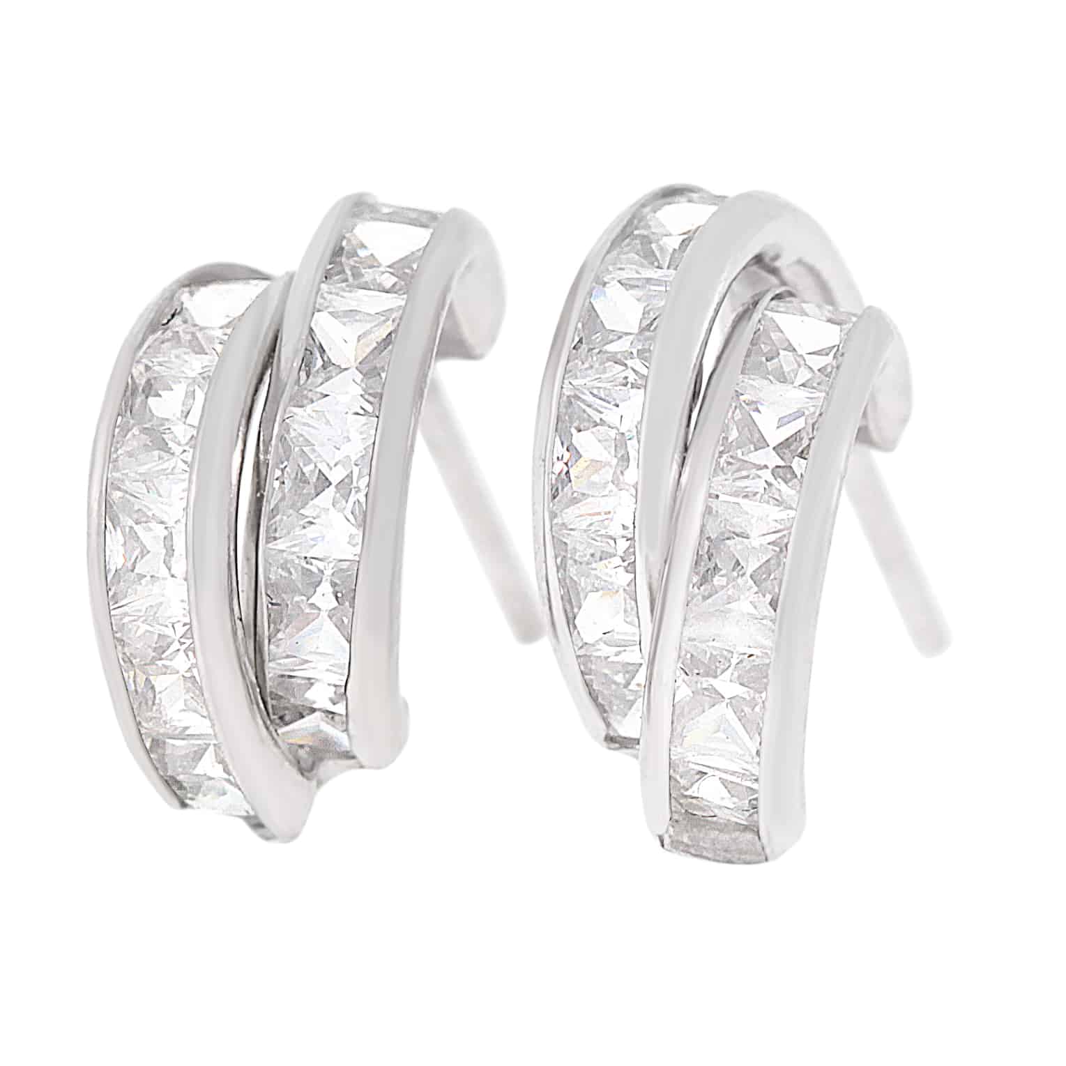 Disse flotte øredobbene er satt sammen av hvitt gull (585) 14k og zirkoner, de er formet i en halvsirkel som legger seg veldig fint rundt øreflippen.