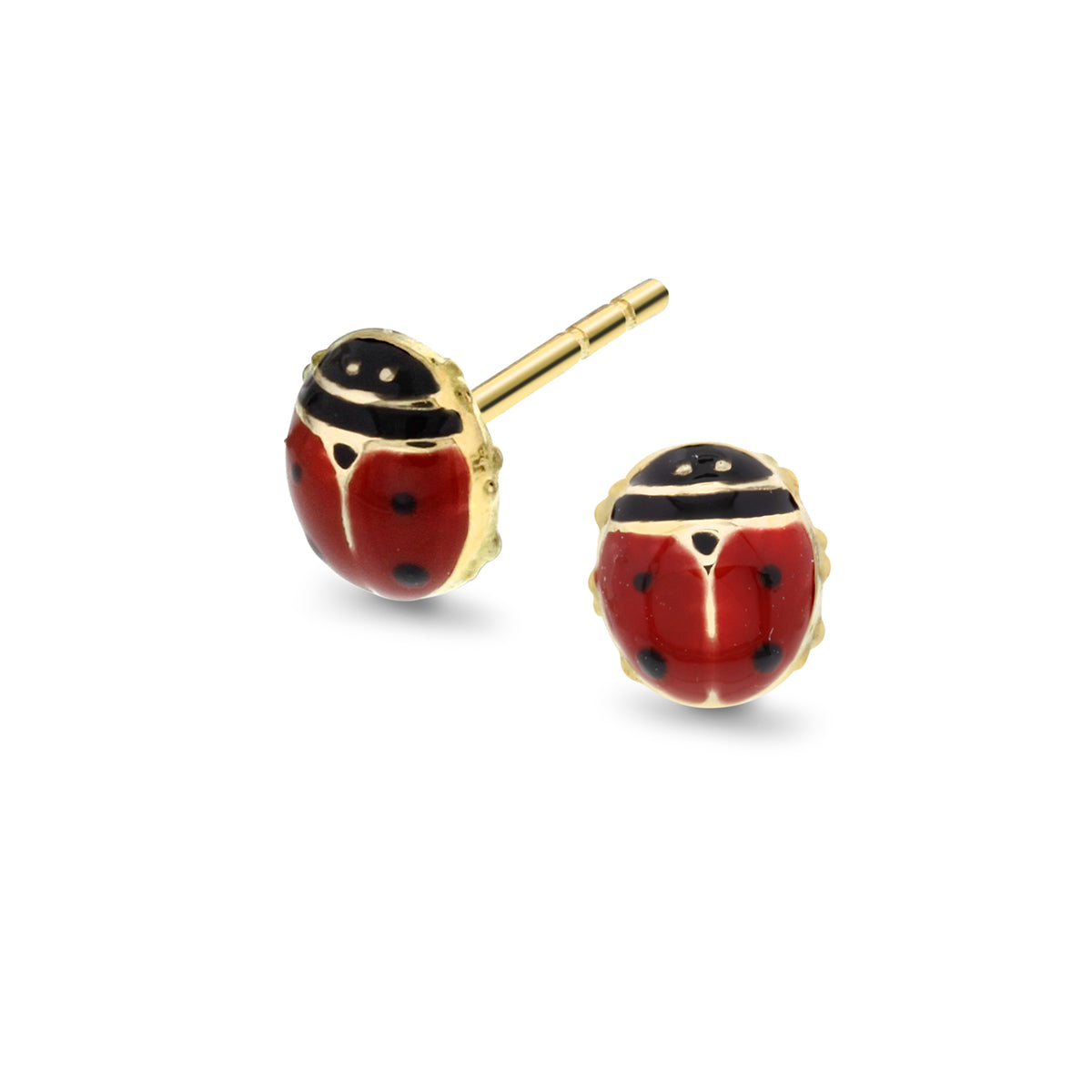 Flott 14k (585) ørepynt i gult gull og emalje, med marihønemoitv. Dette passer perfekt til barn, og som gave til dåp eller navnedag.