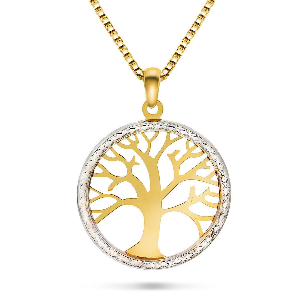 Livets tre anheng i gult og hvitt gull 14k gull (585).