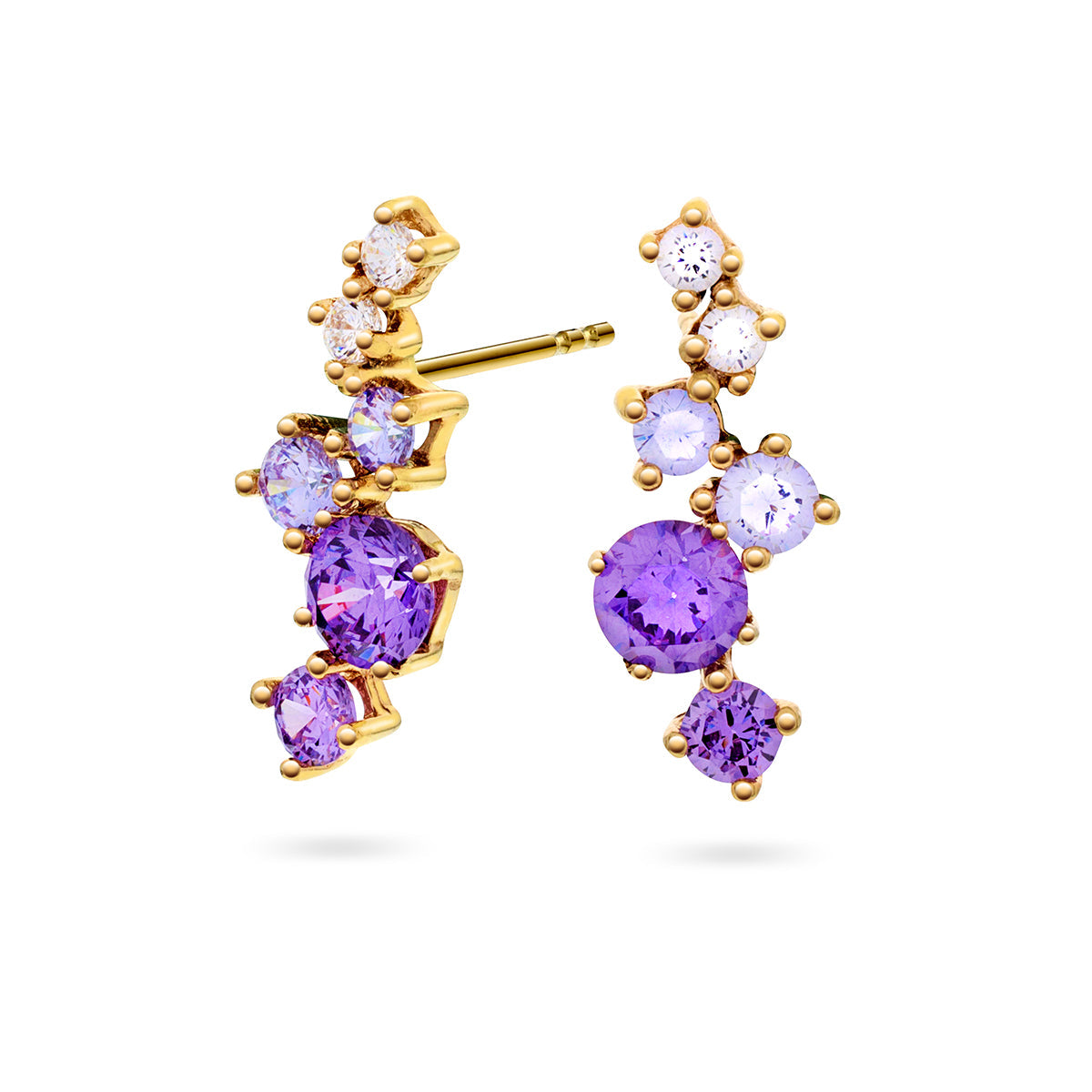 Vakker ørepynt i 14k (585) gult gull med ametyst fargede zirkoner.