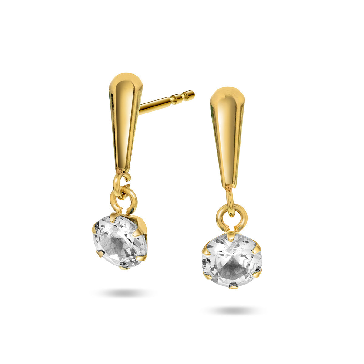 Vakre øredobber i 14k (585) gult gull med hvit farget zirkon.