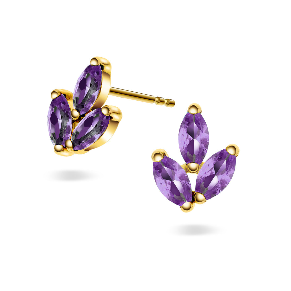 Vakre øredobber i 14k (585) gult gull med lilla farget zirkon.