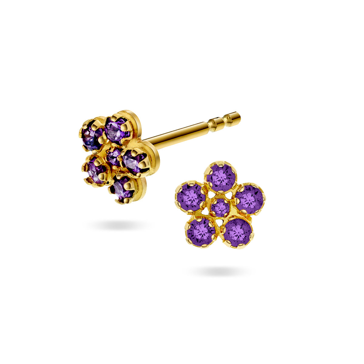 Vakre øredobber i 14k (585) gult gull med lilla zirkoner.