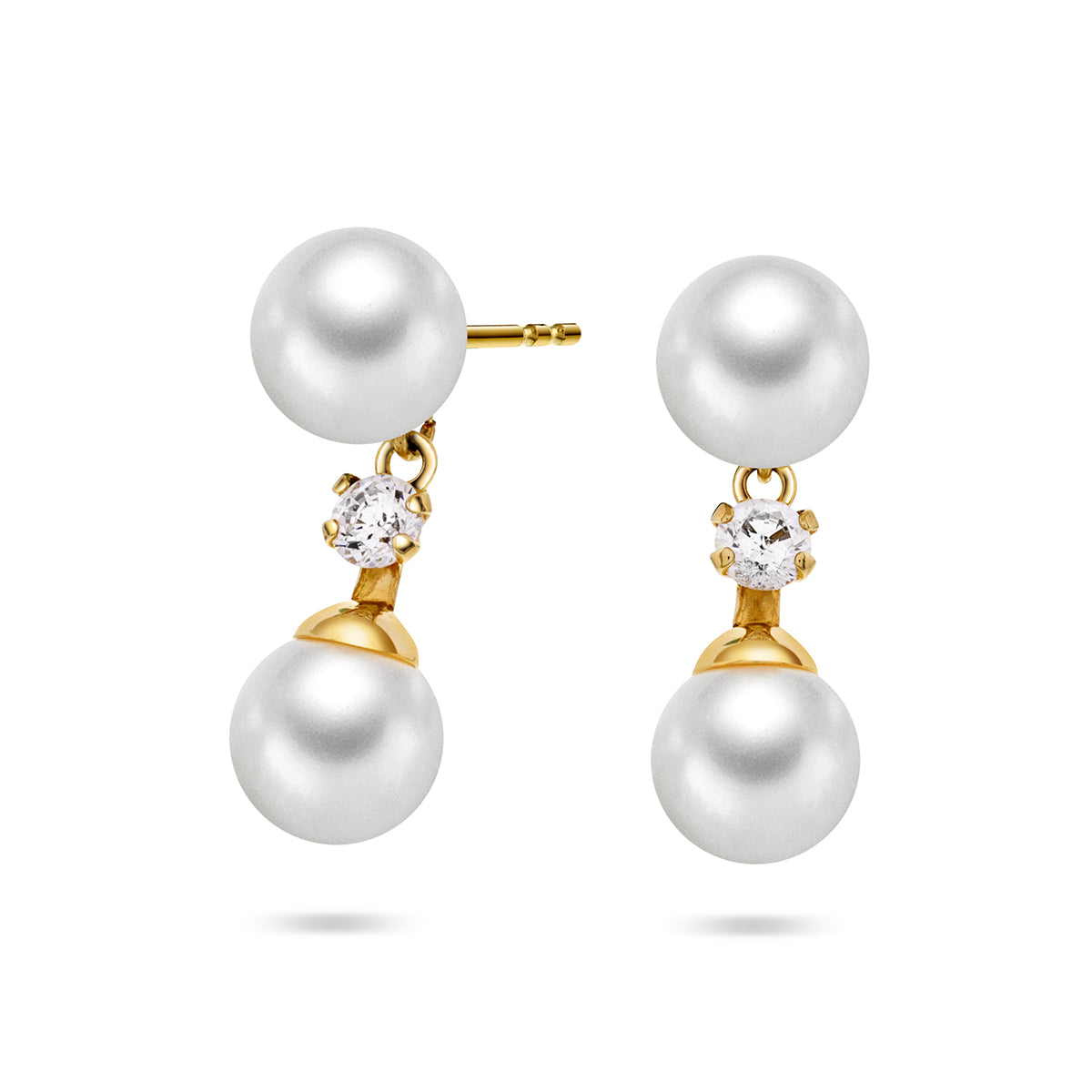 Vakre øredobber i 14k (585) gult gull med ferskvannsperler (fvp) og zirkoner