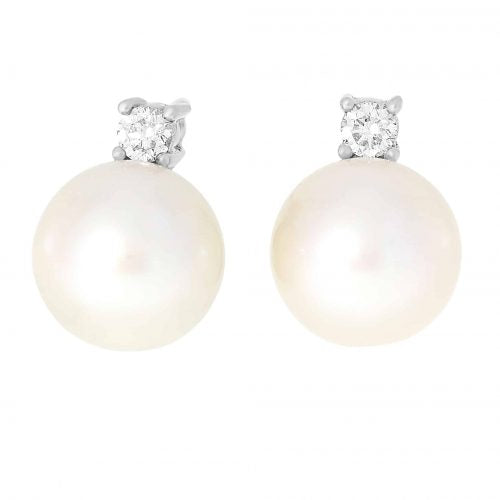 Perle øredobber med diamant i hvitt gull, 0.20CT TWSI