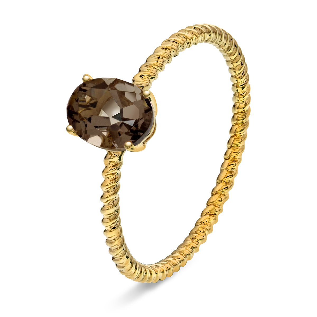 Ring i Gult Gull (585), 0.90ct Oval Røykkvarts
