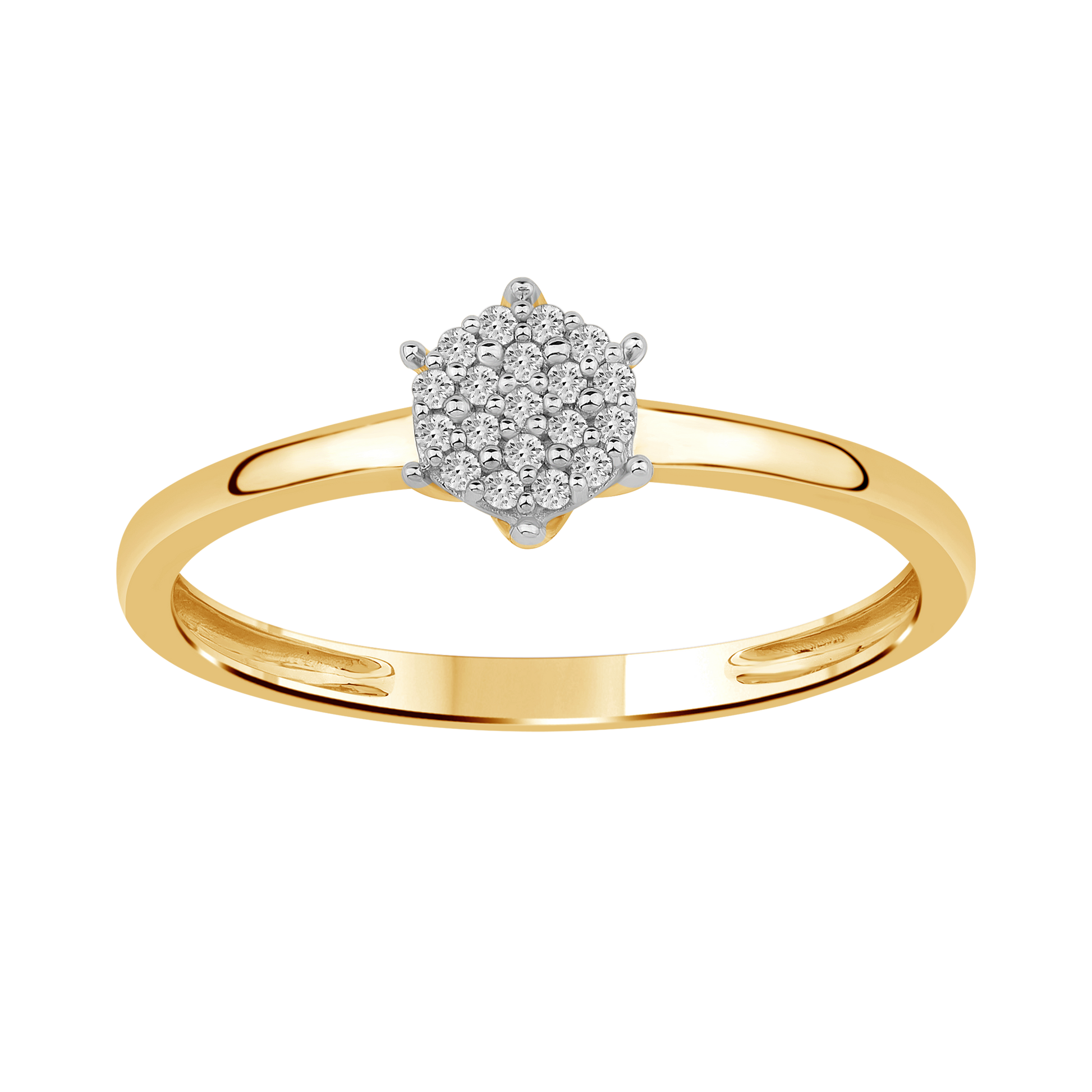 Denne diamantringen kombinerer klassisk rosettdesign med et moderne og stramt uttrykk. Midtfeltet består av flere små diamanter satt tett i sirkel, noe som gir et helhetlig og livlig spill i lyset. Ringen har en ren og avrundet skinne som gjør den behagelig å bruke til hverdags. Tilgjengelig i både gult og hvitt gull.