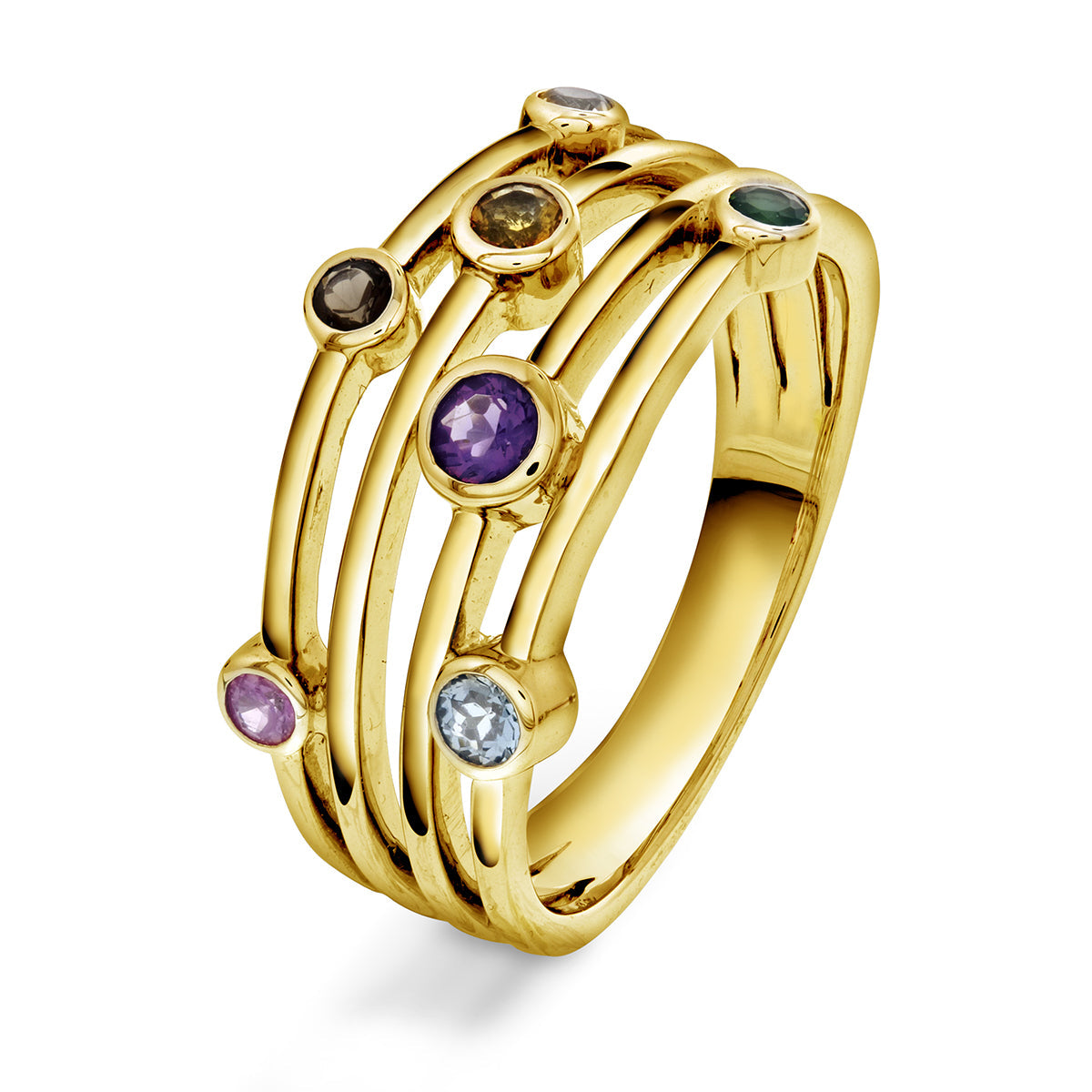 La stilen din skinne med et smykke som kombinerer eleganse og fargerik personlighet! Denne ringen i eksklusivt hvitt eller gult gull er utsmykket med flerfargede edelstener på totalt 0.35 ct, smakfullt plassert på et moderne og lekent design. Perfekt for deg som ønsker et uttrykksfullt smykke som både tiltrekker seg oppmerksomhet og utstråler tidløs klasse. Et stilsikkert valg for både hverdag og festlige anledninger.