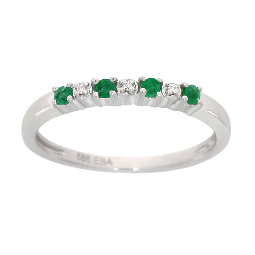 Ring i Hvitt Gull (585), 0.01ct TWSI Diamanter og Smaragder