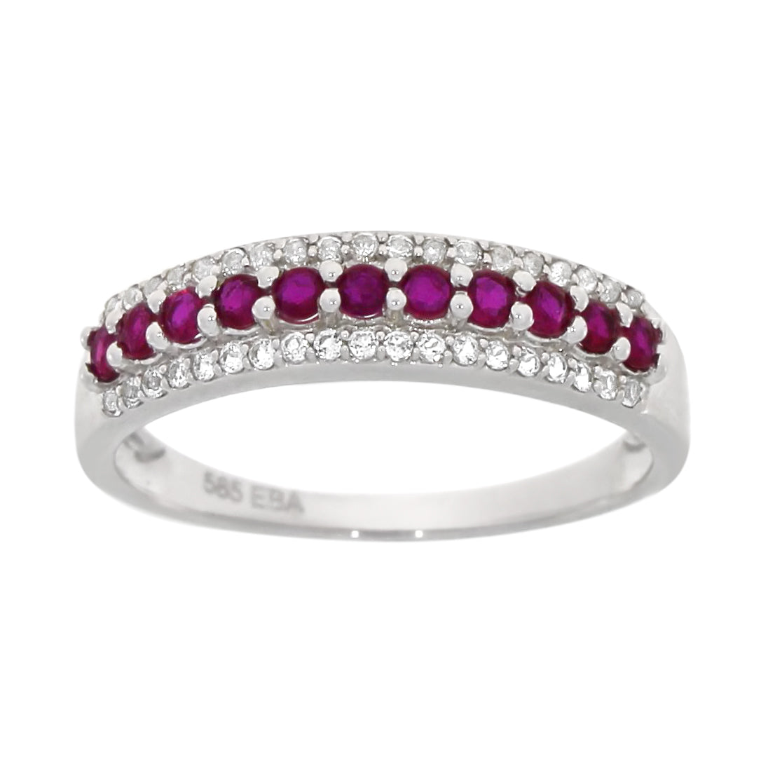 Ring i Hvitt Gull, 0.25ct Hvit Topas og 0.50ct Rubiner