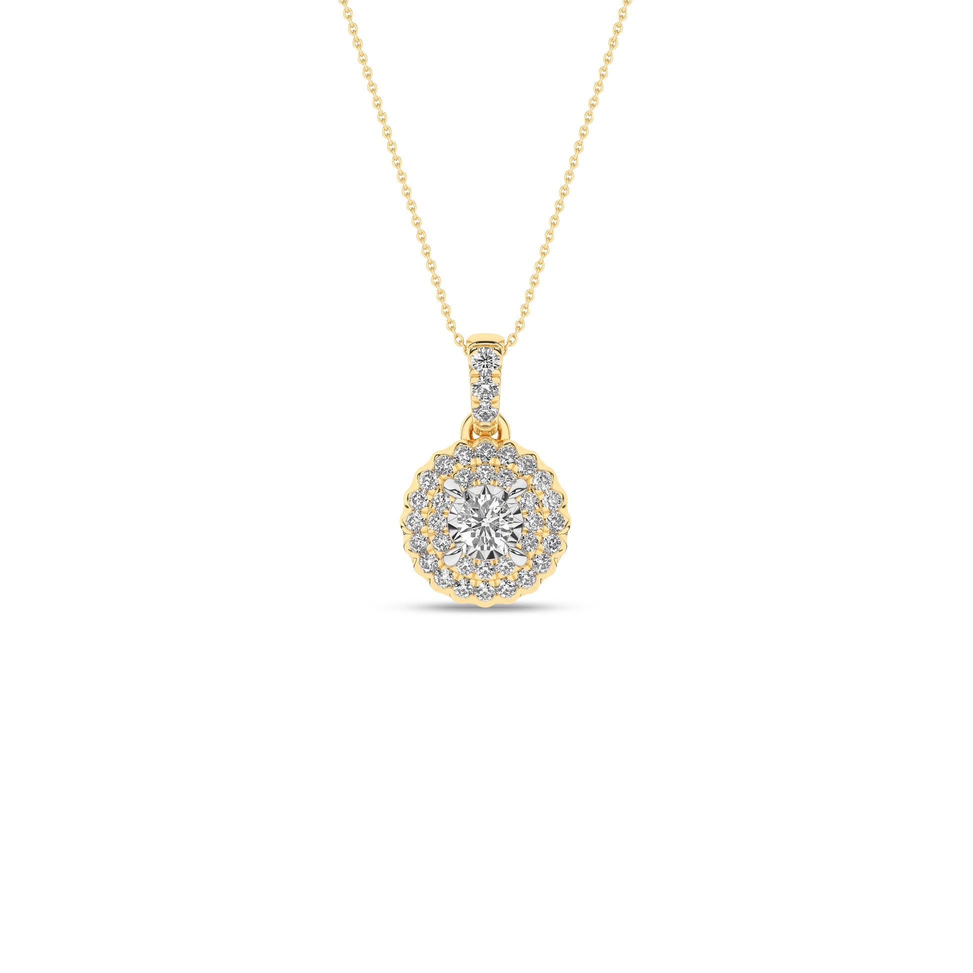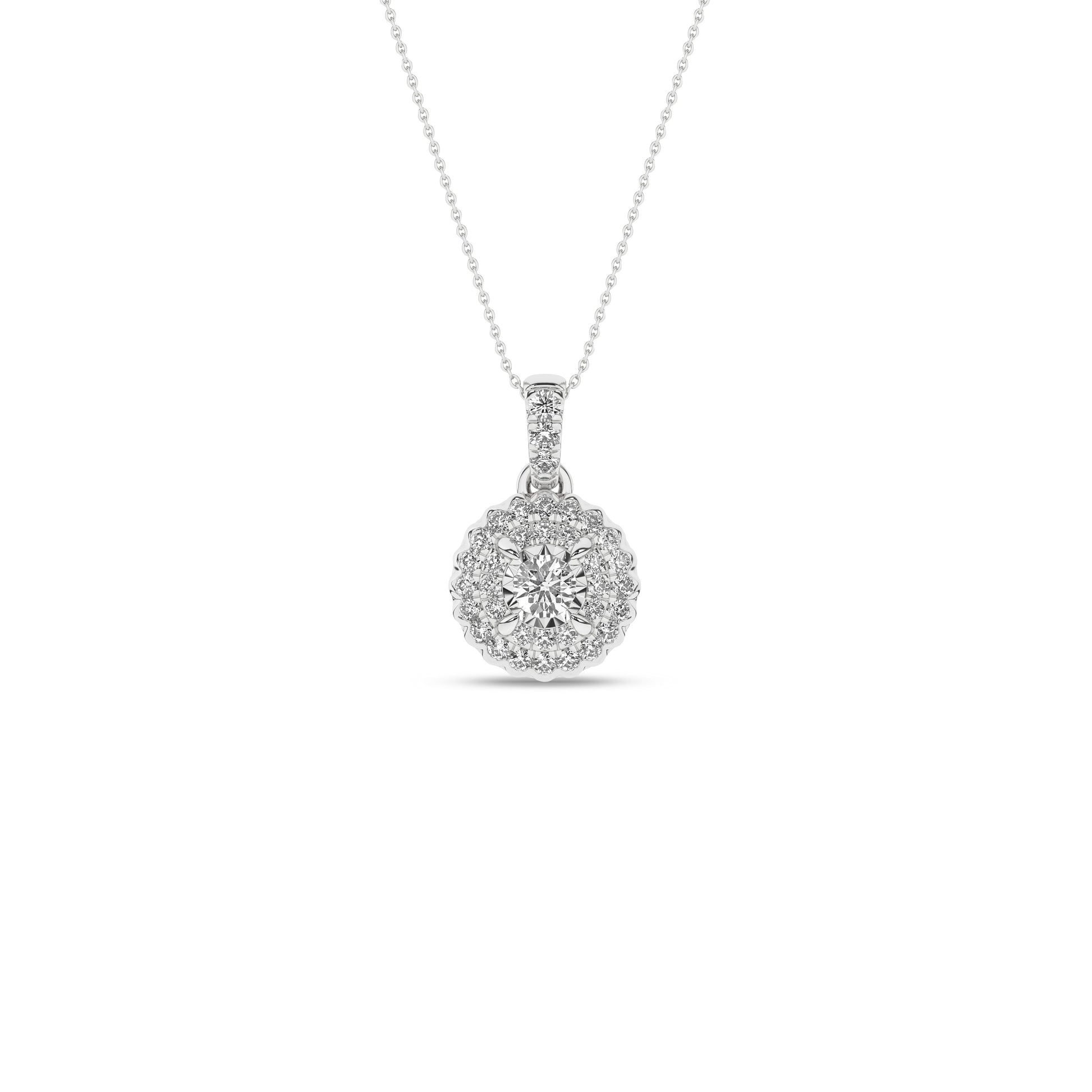 Glitrende rosettsmykke i 14 karat gull, tilgjengelig i både hvitt og gult gull, med 0.25 ct strålende diamanter. Det runde designet fremheves av en sentral diamant omgitt av en glitrende halo, som skaper et imponerende lys- og glansspill. Et tidløst smykke som kombinerer klassisk eleganse med et moderne preg. Perfekt som en gave til en spesiell anledning eller som et raffinert tilskudd til din egen smykkesamling.