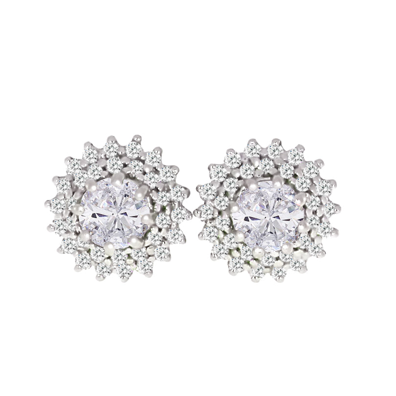 Luksuriøs rosettørepynt i hvitt gull med en strålende midtdiamant på hele 0.50 ct, omkranset av små diamanter som sammen utgjør en totalvekt på 0.60 ct TW/SI. Den elegante komposisjonen gir et blendende uttrykk og et design som balanserer volum og finesse.